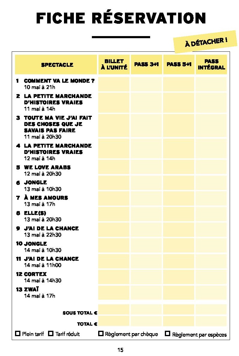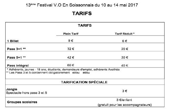 - Pendant le festival, vente de billets à l'unité à l'entrée des spectacles et par téléphone de 11h00 à 18h00 au 06.47.91.88.12
